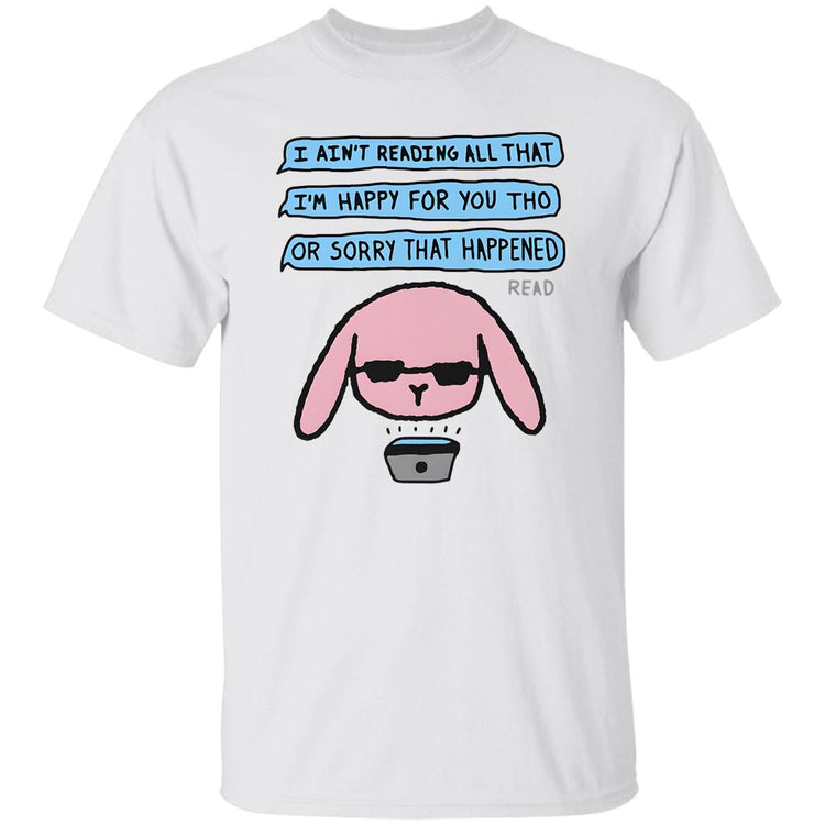 I Ain’t Reading All That I’m Happy For You Shirt, Hoodie, Long Sleeve, Sweatshirt, Tank Top, Guys Tee, Ladies Tee