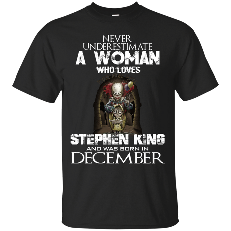 Never Underestimate A Woman Who Loves Stephen King And Was Born In December T-Shirt